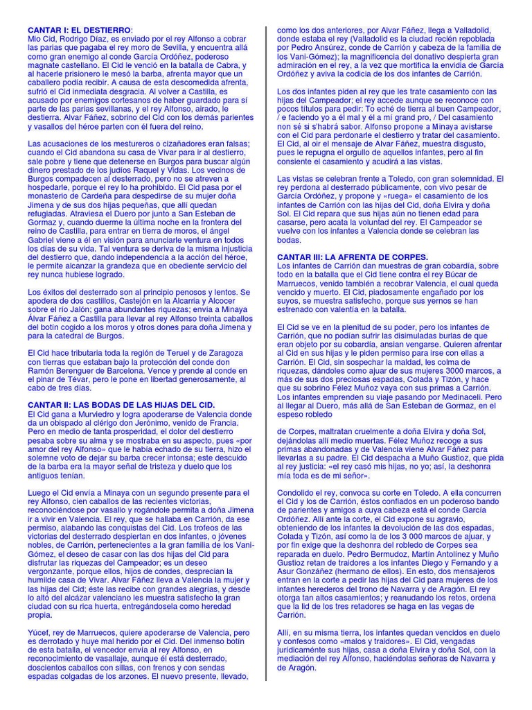 Descargar Resumen Del Cantar De Mio Cid