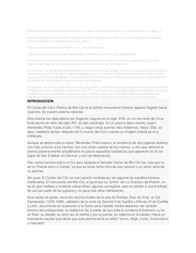 Analisis De El Mio Cid Docsity