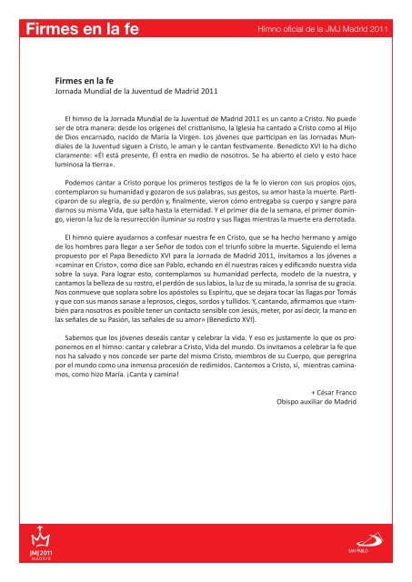 Pdf Com Letra Partitura E Acordes Jmj 2011 Madrid