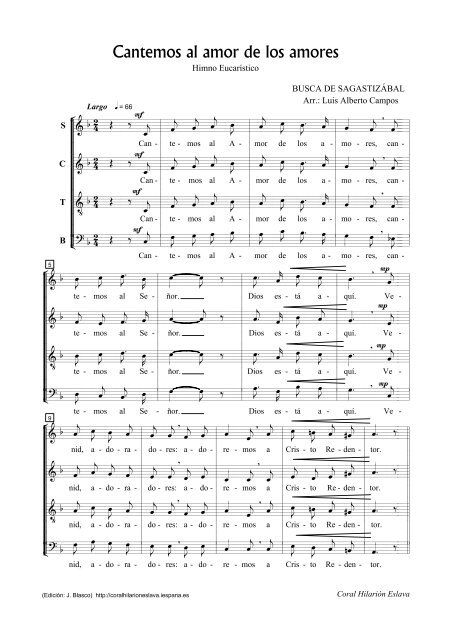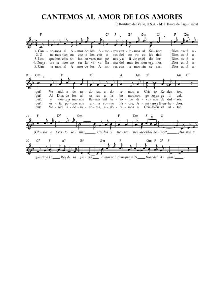 Http Partituras Emreligiosa Cl Cantemos Al Amor De Los Amores Pdf